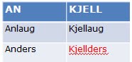 Så hvordan lager man nye ord? Vi starter med navn. Norske navn har en del vanlige forstavelser, og en del vanlige endinger. Mange av disse kombinasjonene er normale navn, men noen er ubrukte. La oss sette det opp i tabell: